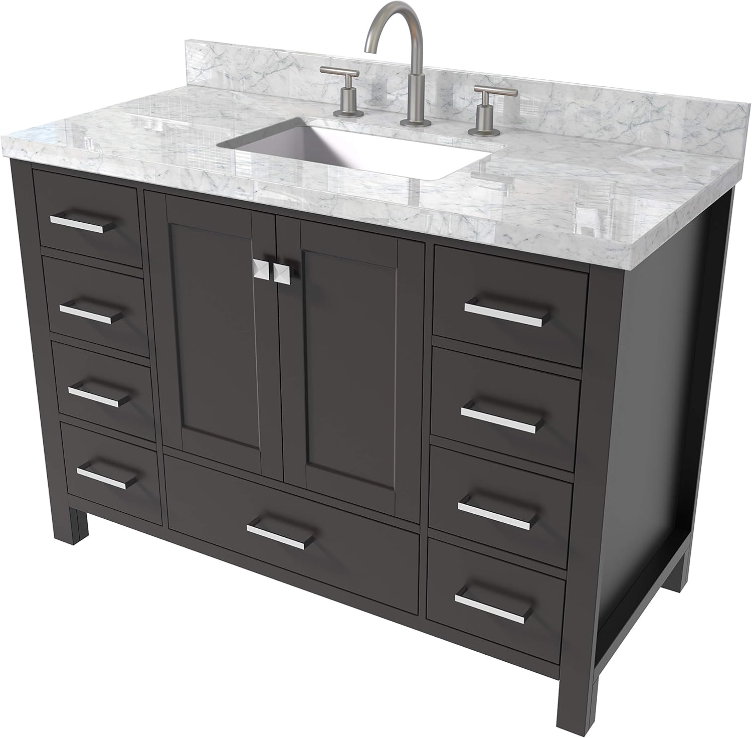 Get 5% in rewards with club o! The richmond satin white bathroom vanity with drawers is designed to fit into any bathroom design scheme. Its freestanding frame is crafted from solid and engineered wood with a neutral finish. W side drawer bath vanity in white with alpine composite vanity top in white. This 49 single bathroom vanity set has a slatted shelf and crisp white marble surface for the perfect amount of coastal style in your space.